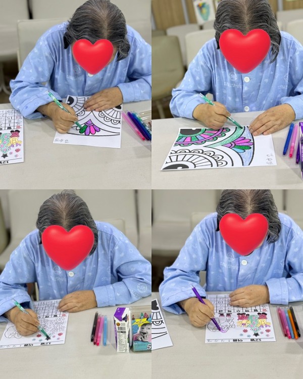 어르신들께서는 손끝으로 색칠하며 소근육을 사용하고, 날짜를 적으며 자연스럽게 인지활동도 하실 수 있어 매우 의미 있는 시간이 되었습니다.