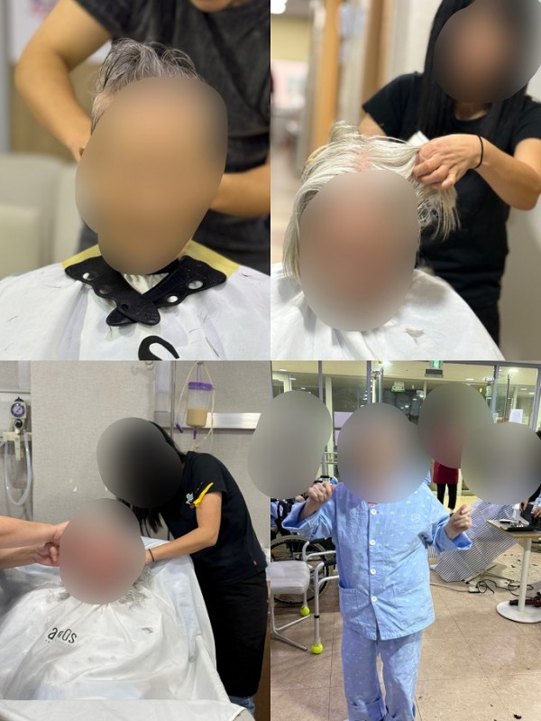 세 분의 봉사자분들은 어르신 한 분 한 분에게 맞춰 정성스럽게 머리를 손질해 주셨으며, 덕분에 병원 곳곳이 환한 미소와 따뜻한 분위기로 가득했습니다.