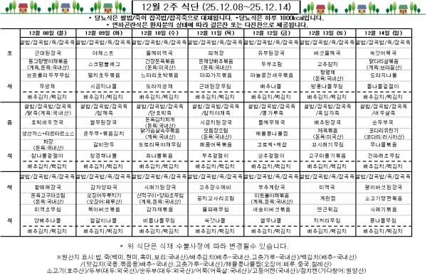 "금주의 식단 메뉴를 확인 할 수 있습니다."
