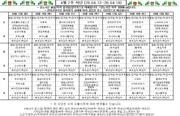 "금주의 식단 메뉴를 확인 할 수 있습니다."