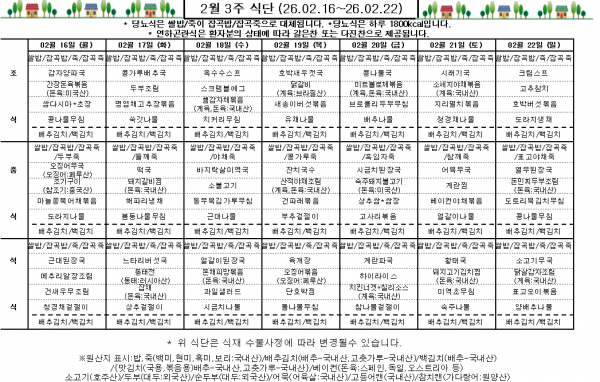 "금주의 식단 메뉴를 확인 할 수 있습니다."