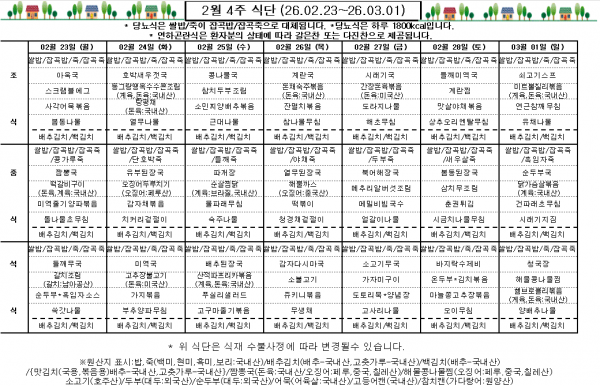 2월 4주 식단표